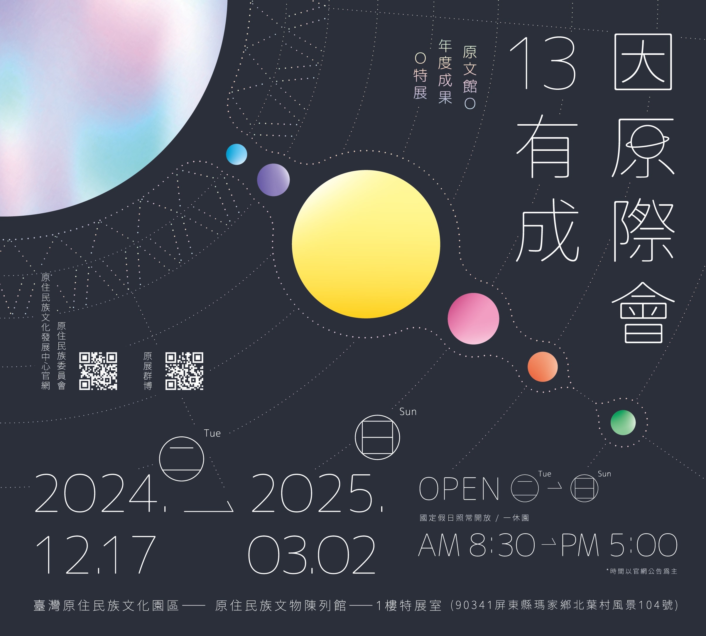 主旨 轉知原住民族委員會原住民族文化發展中心辦理「因原際會.13有成:全國原住民族文化館年度成果展」