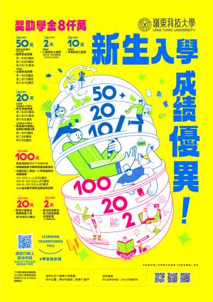 公告內容 主旨:檢送嶺東科技大學114學年度新生入學成績優異助學金電子文宣,敬請協助公告,請查照。