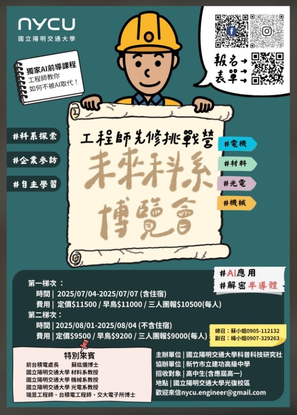 主旨 轉知國立陽明交通大學舉辦「2025工程師先修挑戰營—未來科系博覽會」