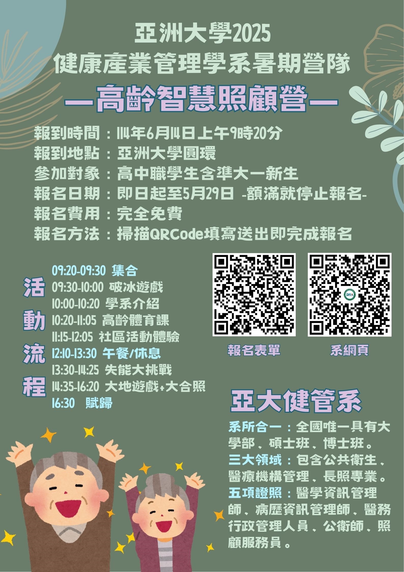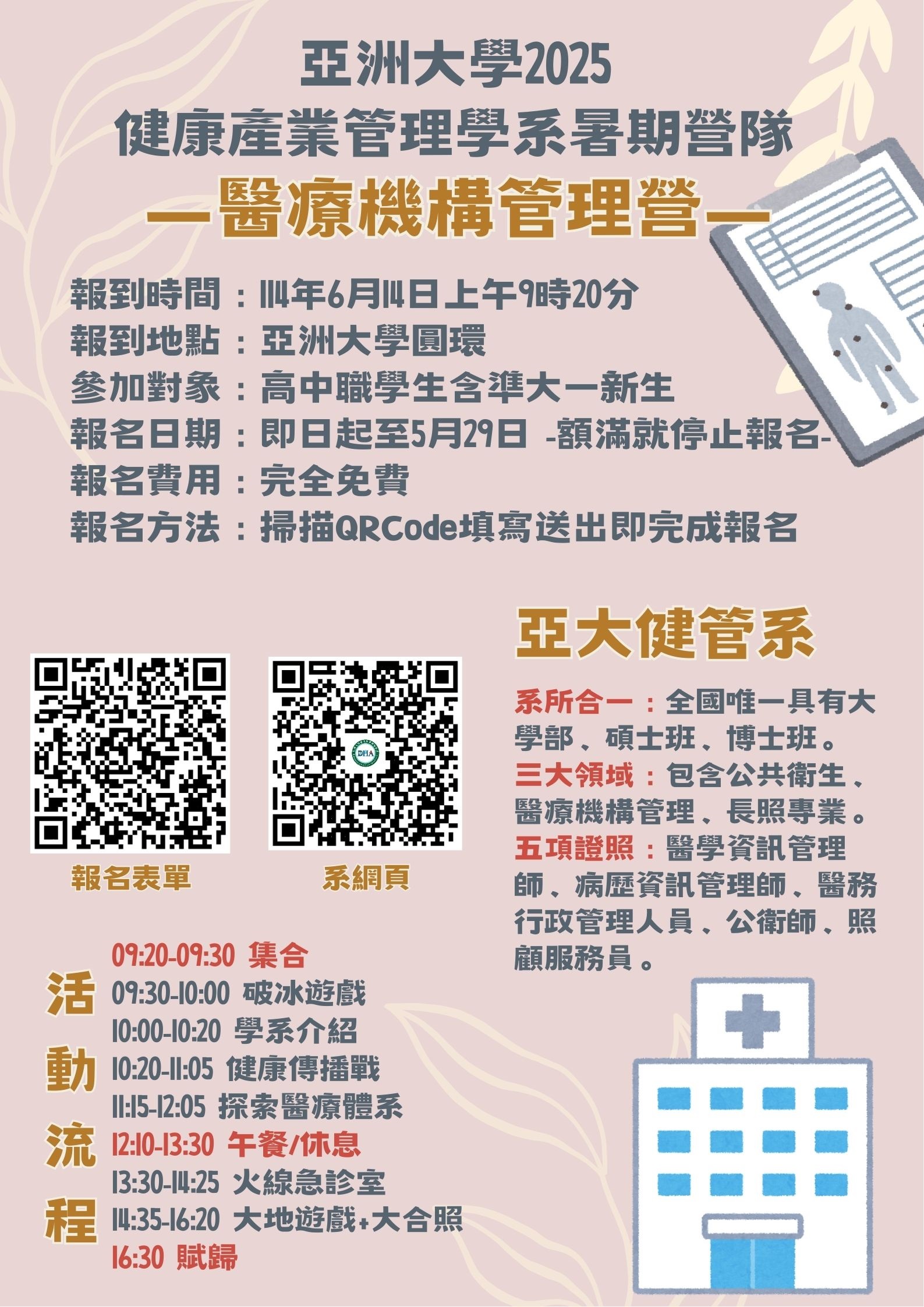 主旨 轉知亞洲大學舉辦「2025健康產業管理學系暑期營隊」