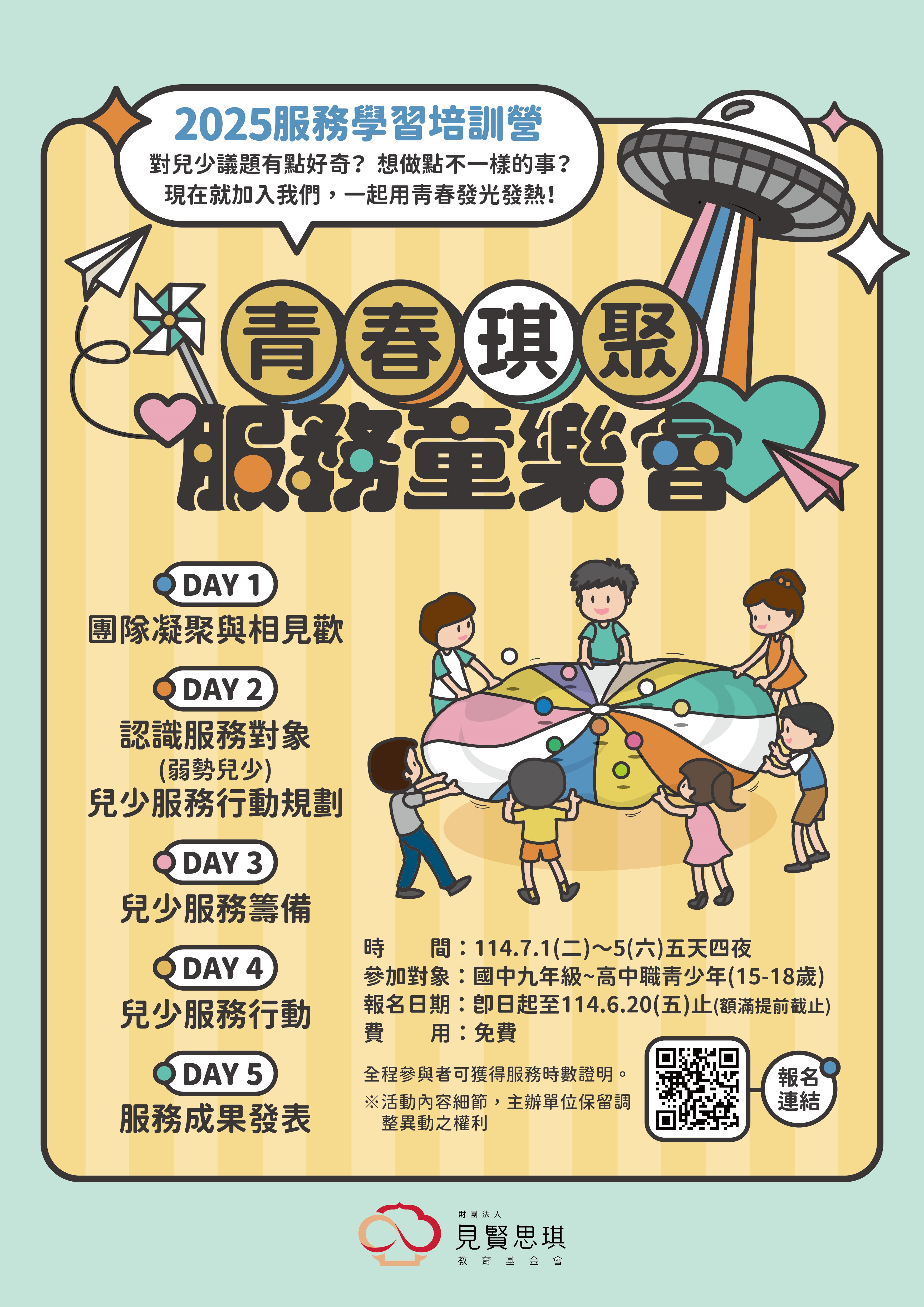 主旨 轉知財團法人見賢思琪教育基金會辦理「2025青春琪聚-服務童樂會」暑假服務學習培訓營