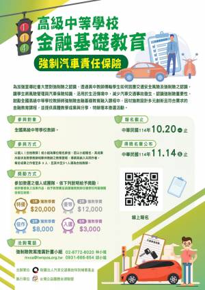 主旨 「114年度高級中等學校金融基礎教育強制汽車責任保險教案暨教學實施成果」徵選案