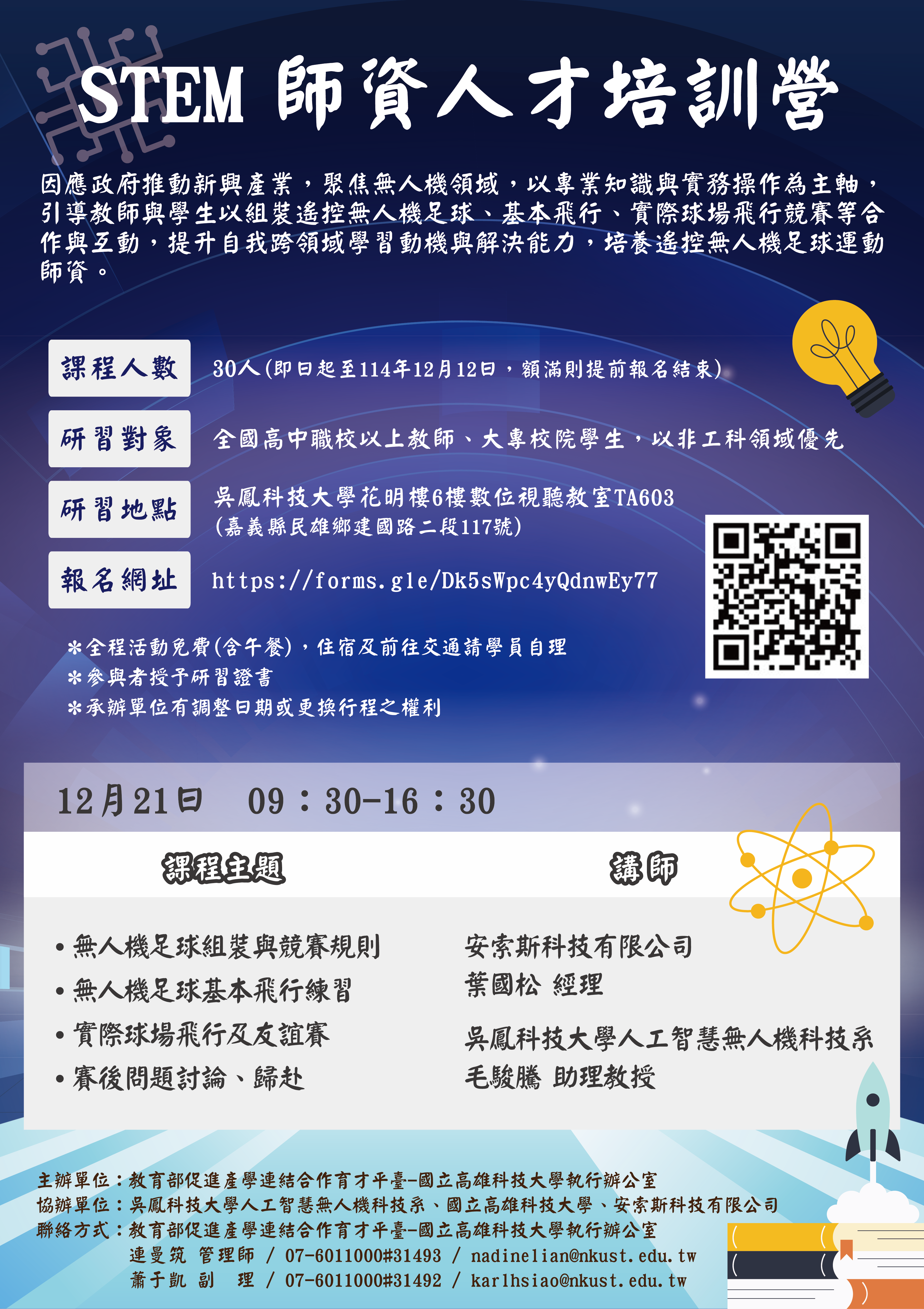 (三)課程人數:上限30人(報名時間為即日起至114年12月12日,額滿則提前報名結束)。