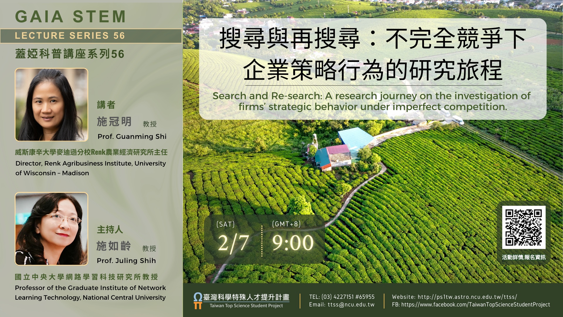 主旨 轉知國立中央大學辦理線上講座:《蓋婭科普講座系列 56》—— 「搜尋與再搜尋:不完全競爭下企業策略行為的研究旅程」